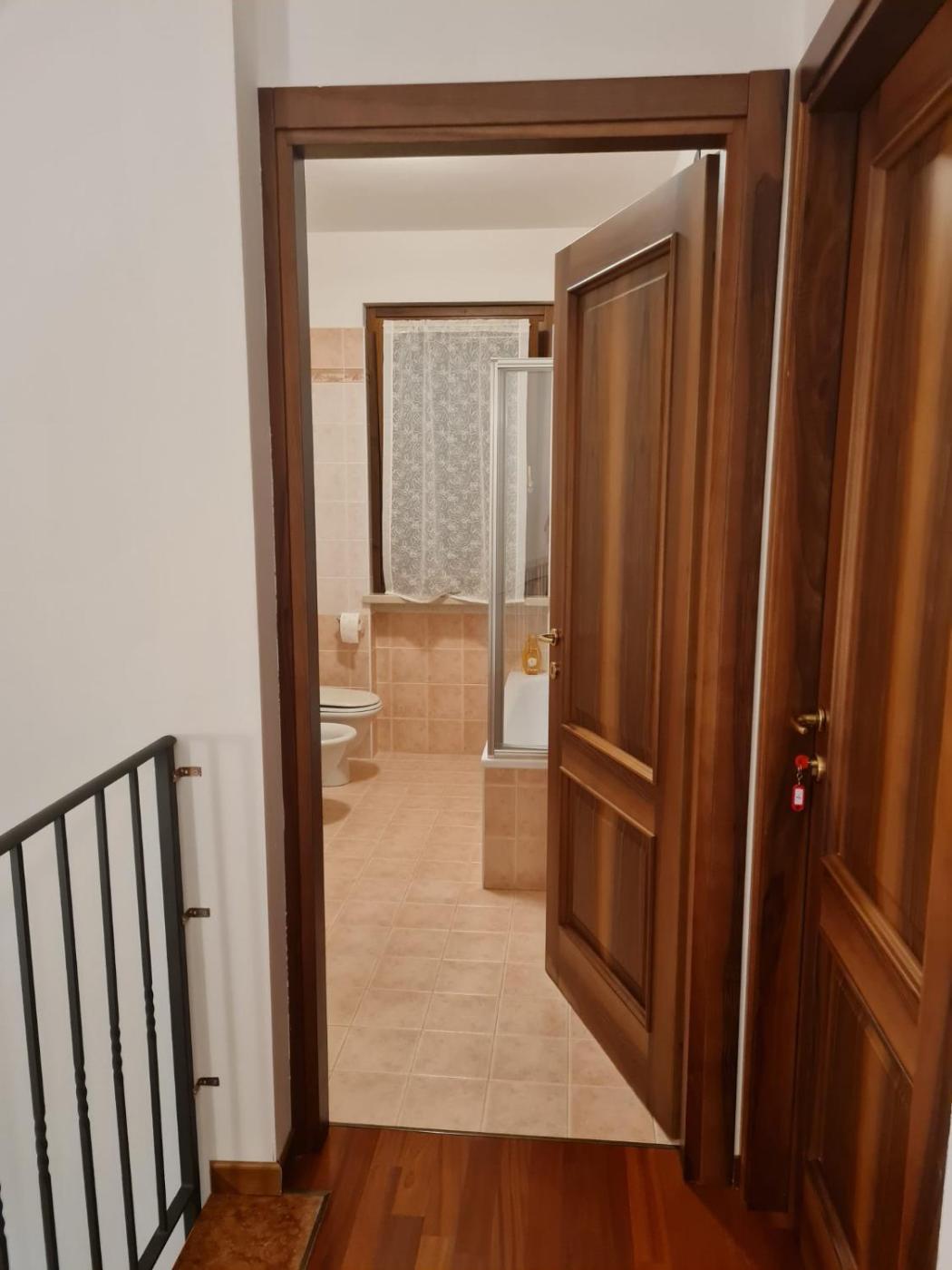 Camera Matrimoniale con Bagno Privato Esterno. Camera matrimoniale climatizzata dotata di ingresso indipendente, balcone con vista sul giardino e bagno privato con doccia. Lalloggio presenta 1 letto.